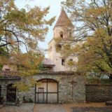 Old Shuamta Monastery is located in Kakheti, some 7 km from the town of Telavi. The architectural ensemble of three churches stands in a lonely woody area. A small church dated to V c AD – earliest of those three, is the prefect sample of the very first attempts of construction of basilicas in Georgia. Its space is not elongated towards the east-west axes that would have been natural for that type of architecture, naves are divided by a pair of arches rested on columns, with the width of the arch spans colliding with that of the entrance doors. Due to this the middle nave is perceived as a high hall, while the lateral ones connected by a doorway arranged on the west are sooner the narrow ambulatories then naves. Another church of the ensemble built in VII c is Mtskheta Holly Cross Monastery-type building, but compared to the latter, depths of apses and bems are decreased here, thus emphasizing the importance of dome barrel against the entire space of the building and its basic constructional segments. The corner rooms here have simple quadrangular configuration in contrast to that of Mtskheta monument, with cross-shaped outlines. The third church of the Old Shuamta Monastery was also build in VII c. It is a small construction crowned with the dome. Its design basically duplicates essential segments of Mtskheta Holly Cross monastery architecture and of other alike monuments – apses are arranged at all four side of the central square, corner niches are arranged as well, but corner rooms are missing here, that in other similar monuments are regarded to be the root cause for the arrangement of those niches. In this particular case they have only one aim – division of the space. All three churches are built of cobble stone and are free of any decoration but very simple “eyebrows” above the windows. Well-tempered sizes and perfect proportions are the only merits of all three monuments of the Monastery.